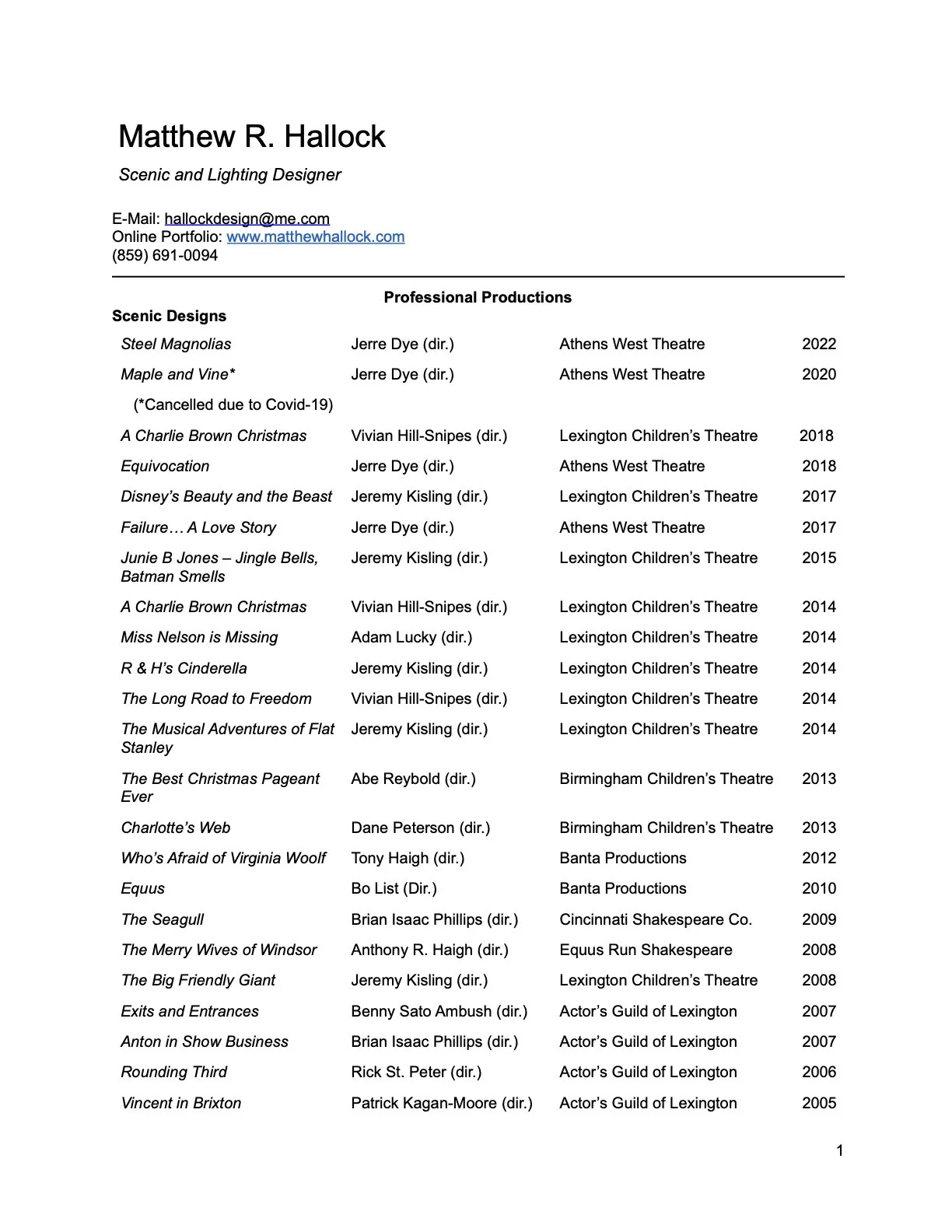 Matthew Hallock - Designer for Theatre